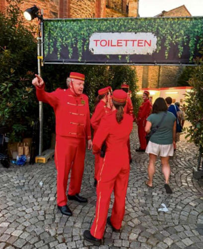 The pee chain is the second highlight of the evening. When the intermission begins, the entrances to the