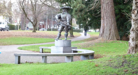 The statue of d'Artagnan in the city park (section Van Aldenhofpark) of Maastricht and the discovered skeleton © L1 (Bern Opdenacker)
