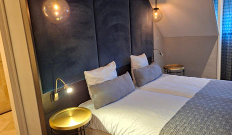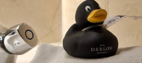 Suddenly two members of the popular Limburg rockband Rowwen Hèze appeared on stage! The black curtain was removed and 12 musicians came in the picture to accompany Jack Poels and Tren van Enckevort, in a rousing, fantastic finale. At 3:30 pm, the concert ended with "Adieu." Thanks, André and the Tempeleers, we had a wonderful time. Standing on our feet for about four hours was a challenge at our age! But our room was ready, and we could rest right away! Pierre has plans to modernize the hotel and asked each guest for suggestions for improvement via a welcome card. But as far as we were concerned, it was already perfectly fine. We especially liked the rubber duck, which we were allowed to keep as a souvenir.
