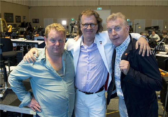 Today André Rieu, André van Duin and Martijn Fischer (in his role as André Hazes), were rehearsing in André Rieu's studio at the Withuisveld in Maastricht for their performance on the 30th of April. The repertoire of "The Three André's" will include "Willempie", sang by André van Duin and "She Believes in Me", an André Hazes song.